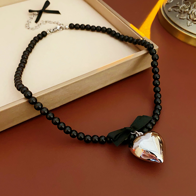 Big Heart Pendant Necklace For Women Two Layer Imitation Pearl Beads Choker Necklaces Party Wedding Jewelry Gifts For Friends Black necklace – Sumsfashion