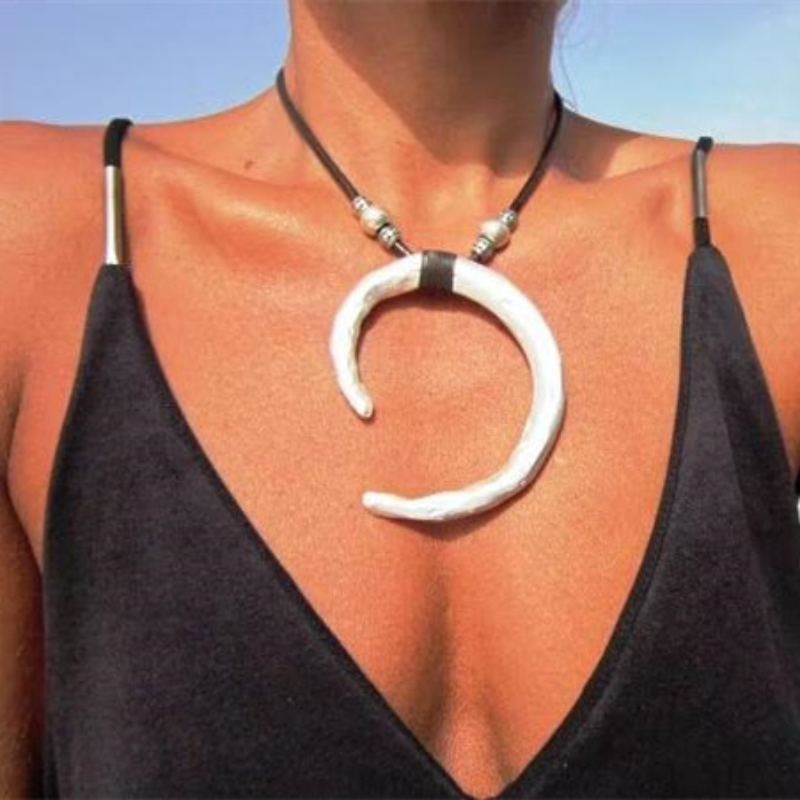 Bohemian Ethnic Exaggerated Crescent Alloy Pendant Necklaces for Women Creative Retro Hand-woven Leather Cord Vacation Jewelry YA4146-1 – Sumsfashion